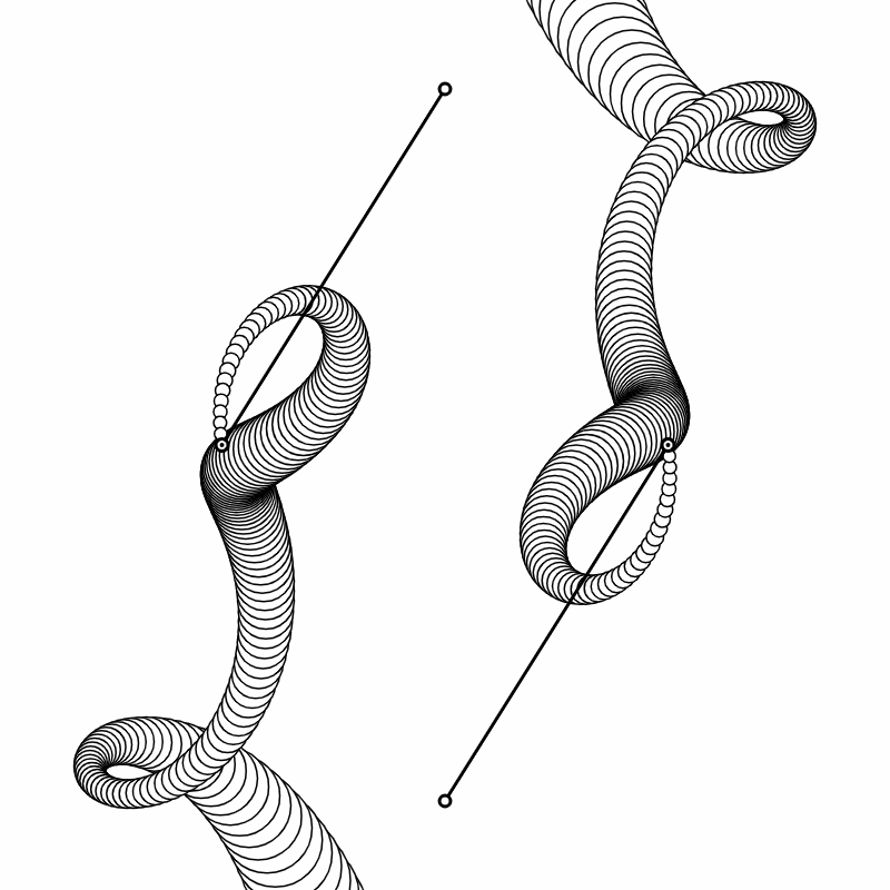 Coded GIFs is a series of looping animations created with p5.js in order to explore rhythm and motion. Each piece evolves smoothly in an endless cycle, balancing precision and fluidity. Mostly rendered in black and white, occasional touches of red punctuate the compositions, subtle sparks of tension within calm, algorithmic motion. The series celebrates the hypnotic beauty of code brought to life through perpetual movement.