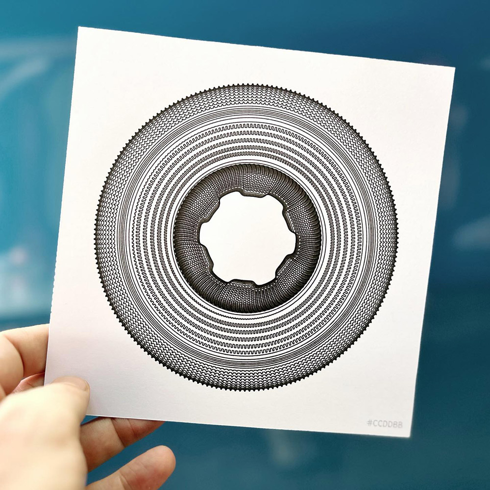 Each Spirale emerges from JavasScript code as a single, continuous line folding over itself, capturing the tension between precision and chaos, structure and flow. All artworks are exported as SVGs and then translated into a physical drawing through pen plotting.